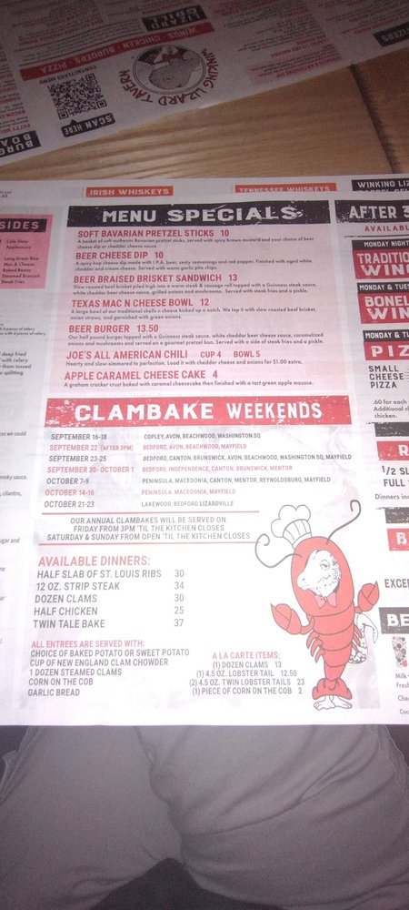 Introducing the menu at Winking Lizard Mayfield, a vibrant eatery nestled in Mayfield Heights, OH, specializing in New American cuisine. This casual spot is perfect for families and friends, featuring a welcoming atmosphere with outdoor seating and plenty of TVs, making it ideal for game days.